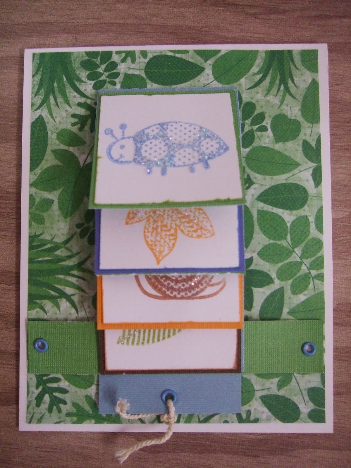 Using Kaiser Papers Hey Birdie and Jungle Bug, also Kaiser Stamp sets which match perfectly with the papers...